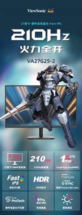 中国上海,2025年10月21日——全球领先的视觉k8凯发登录的解决方案品牌优派(viewsonic)正式发布旗下新款电竞显示器va27g25-2,专为游戏玩家与电竞爱好者打造,融合210hz高刷新率、fast ips面板、hdr10高动态范围与硬件低蓝光,全面提升游戏画面表现与操作舒适度。该产品采用27英寸fhd分辨率设计,兼顾流畅性与清晰度,适配多种游戏场景与桌面空间,成为电竞玩家理想的入门级高刷选择。