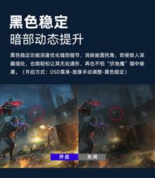 通过osd菜单-图像手动调整-黑色稳定,可为va27g25-2开启黑色稳定功能,让暗场画面细节更明显,也让竞技场中的“伏地魔”无处可逃。