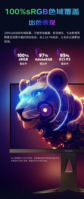优派vx2581-2k-pro-3拥有100% srgb、95% dci-p3、97% adobergb广色域覆盖,可使游戏画面、影音娱乐、专业影像等图像呈现更丰富的缤纷色彩,加上16.7m色数,让色彩过渡出色也更加顺滑。