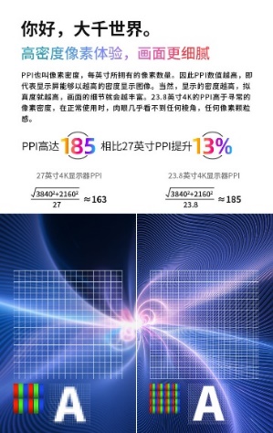 优派va2462-4k-hd拥有3840 x 2160 超高清分辨率,178°可视大角度和三边微边框的ips硬屏,色彩逼真精准;其屏幕像素密度ppi高达185,相比27英寸ppi提升13%,画面细节更丰富细腻。